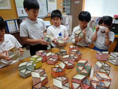 少し前のことになりますが,5月中旬に津幡町在住の川幡さまに,全員が手づくりのペンたてをいただきました。1つのペンたてをつくるのに4個の牛乳パック使って組み立て,仕上げにおりがみを貼って完成させるそうです。子供たちは,好きな柄を選びました。川幡さま,ありがとうございました。