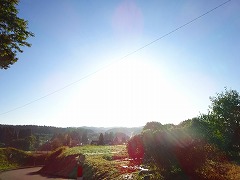 ↑ まぶしくやわらかな朝日が笠野を照らす錦秋の朝です。