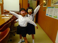 ↑ 5.6年英語 お楽しみハロウィンパーティー! ハロウィンで使われる英語の言葉を楽しみながら練習し、外国の文化に親しみました。仮想でパーティー気分が盛り上がりました。