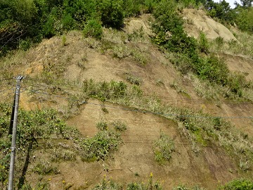↓ 6年理科 地層のでき方の学習で、この地域で地層がみられる場所がありましたので実物を見て観察してきました。何百万年、何億年昔にこの地域が海底や川底であったこと思うと、「はるか昔の時代」のスケールの大きさに驚きます。