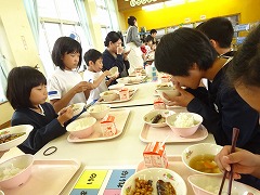 ↓今日は、秋晴れのとてもさわやかな日となりました。台風の影響で延期されていたPTA家庭教育部主催の親子料理教室が笠野公民館の調理室で行われました。津幡町生活改善推進員さんのご指導でとっておきのメニューでの料理教室です。本日のメニューは、豚肉と小松菜の混ぜご飯、焼き春巻き、トマトとレタスのスープにお楽しみデザートは、寒天ときな粉、それに米粉と豆乳をもちいた何とも言えない格別な和風のふんわかとしたデザートです。格別なメニューを友達や親子で調理し、食育を楽しみました。ご指導いただきましたボランティアの先生、お世話いただきましたPTAの皆様、ご参加いただきました保護者の皆様、ありがとうございました。
