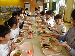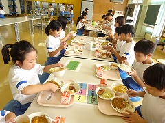 ↓ 一生懸命勉強した後の給食は最高です。今日は、カレーライスでした。ごはん増量!