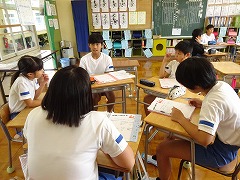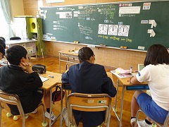 ↓ こちらは5年の国語です。学校をよりよくするための提案書をグループで練り直し推敲しているところです。どんな提案を聞かせてくれるのかとても楽しみです。