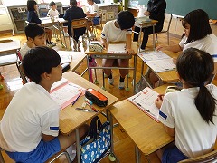 ↓ 5,6年 総合 未来に向けて 自分が調べた将来の夢の職業について伝え合いました。その職業に就くには、どのような過程があるのか、どんな仕事をするのか、その仕事の魅力は何なのかグループの人に伝え、また質問や感想を返していました。質問や感想は、伝えてもらった時の礼儀であり、次の学習へのステップアップとなっていきます。グループでも真剣に高め合う学習ができるのが本校の良さです。