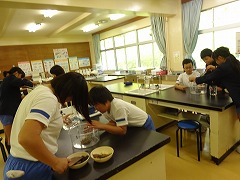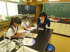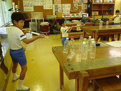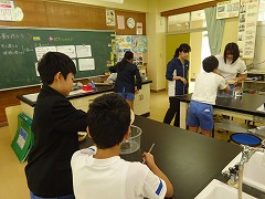 ↓ 4年理科 自分の考えた遊び体験から、空気と水を押し縮めたときの感触を体感しました。違いをそれぞれに表現して実感として残ったようです。