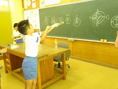 ↓ 3年理科 棒の影を観察したデータから何がわかるか話し合っているところです。