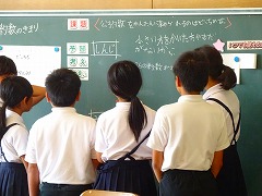 ↑ 56年複式道徳科 流行の物を買う心と、古くても大切に使う心について話し合いました。どんな考え方の違いがあるのでしょうか。自分の経験と合わせて話し合っていくうちに、深い議論をにたどり着きました。「古いものを大切に使うということは、自分のことだけではなく、両親のことも考えていると思う、どうしてかというと・・・」こんな意見も出ていました。