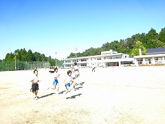 ↓ いわし雲やひつじ雲を見ながら、今日も元気に広い運動場を走りました。