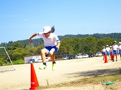 ↑ 大ジャンプ!走り幅跳びで、大地を蹴って、大空へ大きくジャンプしました。先生も高ーくジャンプ!