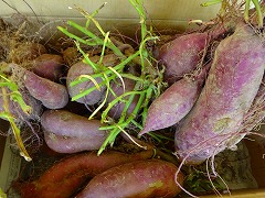 ↑学校農園のサツマイモが収穫間際にイノシシにすべて食べられてしまいました。そしたら、地域の方がこんなに立派なさつまいもを学校にくださいました。本当にありがたいです。