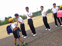 ↑ 止まっていただいた車に、全員で「ありがとうございます」のお辞儀をするところが笠野っ子の伝統です。