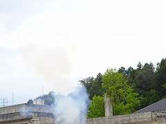↑ 午前7時天高く、運動会実施の合図の花火が上げました。笠野っ子パワーで雨雲を吹き飛ばしてくれると思います。皆様、応援をどうぞよろしくお願いいたします。