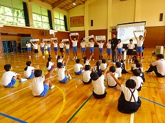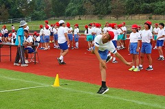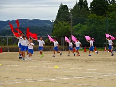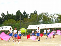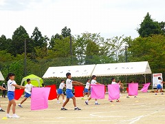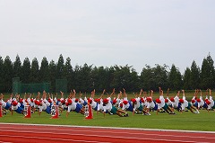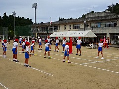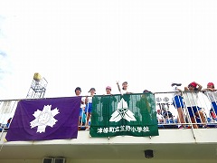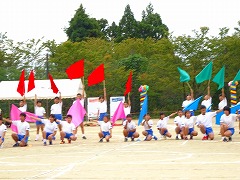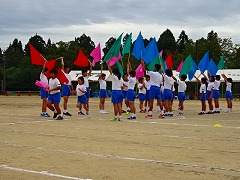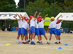 ↑応援合戦、高学年がすべて自分たちで考え創り上げました。アイディアを出し、相談して折り合いをつけて決定し、下級生に教えていきました。応援合戦を通して、チームをまとめ、つくり上げる楽しみと充実感を感じたことでしょう。