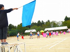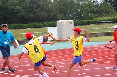 ↓ 全校リレー 赤白大対抗で、絆のバトンをつなぎました。