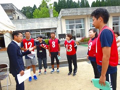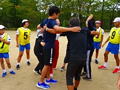 ↓ 社会体育大会にて恒例のキックボールに教員チームで出場しました。コントロールよく、思いっきりもよく、そして、コントロールもよく、3拍子揃って見事2位に輝きました!