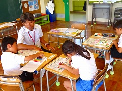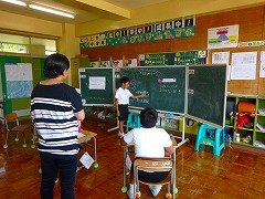 ↑ 2年生が1年生に紹介する「むしむしランド」の練習をしています