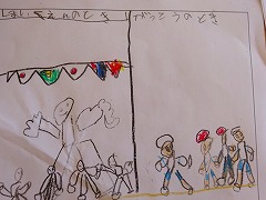 ↑ 1年生が運動会の絵日記を書いていました。楽しそうな表情から、充実感がいっぱいであることが伝わってきます。