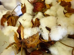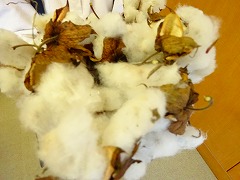 ↑ 3年生が収穫した綿です。ふわふわで思わず触ってみたくなります。