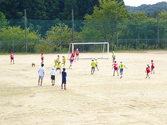 ↑ 今日のクラブ活動は、サッカーです。スポーツの秋、4年生以上で思いっきりサッカーを楽しみました。歓声が校庭いっぱいに響き渡りました。