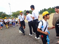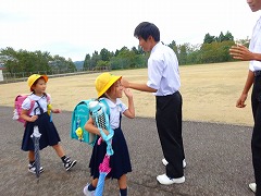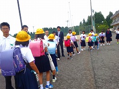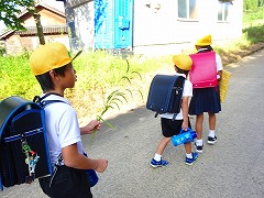 ↑ 止まっていただいた車に、全員で「ありがとうございます」のお辞儀をするところが笠野っ子の伝統です。