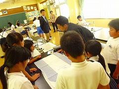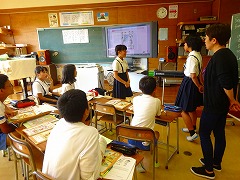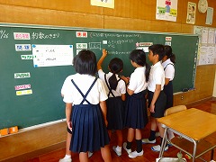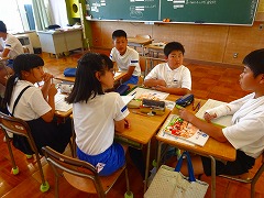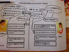 ↑ 56年複式道徳科 流行の物を買う心と、古くても大切に使う心について話し合いました。どんな考え方の違いがあるのでしょうか。自分の経験と合わせて話し合っていくうちに、深い議論をにたどり着きました。「古いものを大切に使うということは、自分のことだけではなく、両親のことも考えていると思う、どうしてかというと・・・」こんな意見も出ていました。