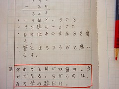 ↑ 2年 算数 3桁のひき算のひっ算の仕方を学んでいます。引き算の方法をノートに書くことにも慣れてきました。