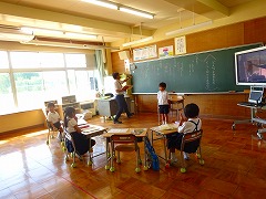 ↑ 1年生はPCで運動会の振り返りを書きました。終わったら、PC問題に挑んでいます。