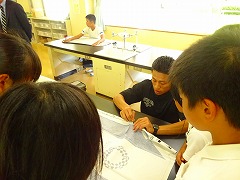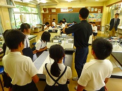 ↑ 2年生のご指導です。2年生は硬筆で、折れ、曲がり等メリハリをつけて書くことを学びました。