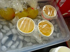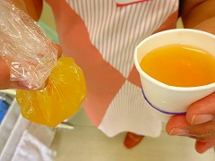 はじめに、糖分調査です。津幡町では糖尿病の危険がある方が石川県一多いそうです。食材が一番おいしいということだと思いますが、AYT(朝野菜を食べよう)を推進し、糖分の摂取量を控えなければならないということになります。おやつとしての糖分は1日10グラムまでということで、今日作ったゼリーを1個食べると満たされ、それ以上取ると食べ過ぎとなります。私自身、驚くとともに大いに反省しました。