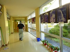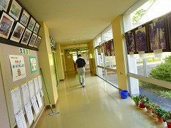 ↑ 廊下のワックスがけの準備に、校務員さんがきれいに汚れを落としてくださっています。ありがとうございます。