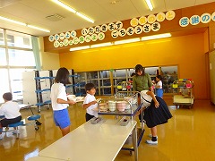 ↑ 今日の給食は、韓国料理で、プルコギやチゲスープでした。ピリッと辛くて食欲がわきました。残暑厳しい本日にぴったりの献立でした。昼サポートさんのおかげで、業後の研修会がゆっくりできます。ありがとうございます。