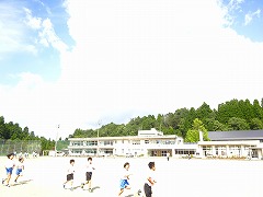 ↑ おおきな「くじらぐも」ならぬ「かいじゅうぐも」が笠野小学校の校庭にやってきました。「かいじゅうぐも」が見守る中、長休みはレッツランランタイムで体力作りに励んでいます。みんないるから頑張れます。