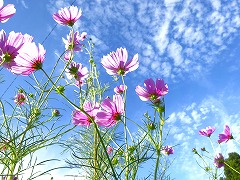 ↑ 私からは、うろこぐも、いわしぐも、ひつじくもについてお話しました。いずれも秋を代表する雲です。「天高く馬こゆる」、秋の空は澄み渡って高いといわれています。空を仰いで、大きく深呼吸して、自分の夢を思い描いてください。
