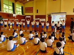 10月の生活目標は、「気持ちのよい言葉をつかおう」です。5.6年生が話し合った気持ちのよい言葉を紹介してくれました。