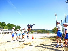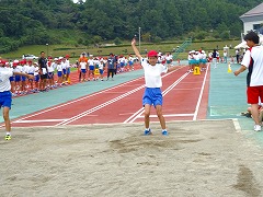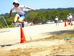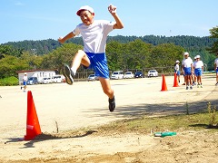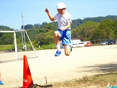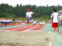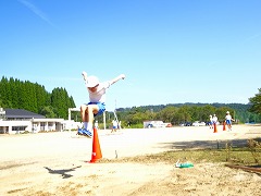 ↑ 大ジャンプ!走り幅跳びで、大地を蹴って、大空へ大きくジャンプしました。先生も高ーくジャンプ!