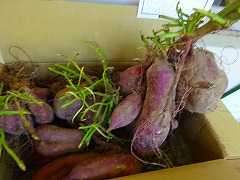 ↑学校農園のサツマイモが収穫間際にイノシシにすべて食べられてしまいました。そしたら、地域の方がこんなに立派なさつまいもを学校にくださいました。本当にありがたいです。