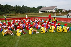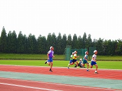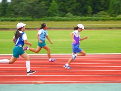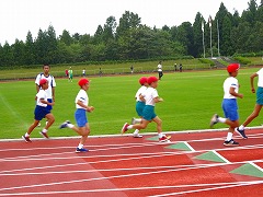 ↑ 開会式と100m走です。笠野小は紫ゼッケンです。