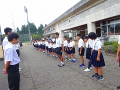 ↑ 中学生と小学生が力を合わせて一緒にあいさつが広まるように、頑張りましょう。ありがとうございました。