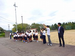↓ 教育長が午後も笠野小にご来校くださり、キックボール終了後、ねぎらいのお言葉をいただきました。そして、笠野っ子、一人一人が主役となって活躍している素晴らしさをたくさんほめていただきました。