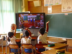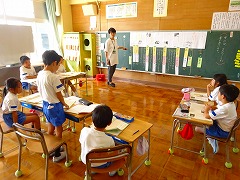 ↑これは、秋の俳句作りです。3,4年生は、秋の俳句を作りましたが、おじいちゃん、おばあちゃんに季節の本を一緒に見ていただき、お話をしているうちに秋のイメージがどんどん膨らんできました。また、習字で俳句を書く様子を見ていただき、アドバイスをいただいたり、褒めていただいたりと、どんどん学習が進みました。