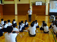 ↑ 生徒指導からは、夏休みの生活についてお話しました。規則正しい生活をして、安全に気を付けてください。また、7月の生活目標「正しく廊下歩行をしよう」で、できた人に廊下歩行の免許書を渡しました。これからも正しい歩行で安全な笠野小学校をつくっていってください。