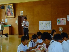 ↑全員で、今日の振り返りをしています。この振り返りを、お互いの学校の良さを実感できる学び合いの場と考え、両校とも大切にしています。全員意見を言うことができました。