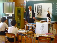 ↑ 習字の先生が来てくださいました。ひらがなの入門期だからこそ、美しいひらがなを書くことを学んでいってほしいと願っています。