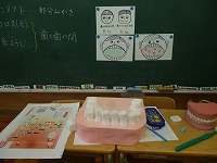 6月16日の3限目、歯科衛生士の藪安恵先生に来ていただいて、「歯みがき教室」を実施しました。参加者は1年生の7人と登美先生です。