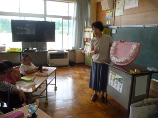 今日は火曜日のお楽しみ、久しぶりの小垣内先生の読み聞かせの日です。