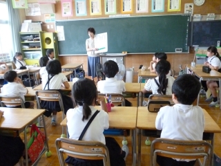 7月6日の2.3限目、1年生と34年生は歯科衛生士の藪安恵先生の歯みがき教室でした。