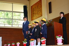 ↓ 始業式では、夢をかなえる秘訣のお話をしました。イチロー選手が小学校6年生の時に書いた作文には、夢をかなえる秘訣が3つありました。1つは、自分の夢に対していささかの迷いも持たないこと。2つ目は、365日のうち360日の激しい練習、つまり勤勉の心を実行すること。3つ目は、感謝の気持ちを行動に表すこと。新学期は節目であり、竹は節があるからこそ、強く、たくましく、上へ上へと延びることができるのです。新学期という節目に、夢を具体的に掲げ、実現して、大きく成長していきましょう。新しい笠野小学校の始まりです。