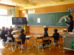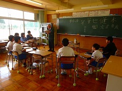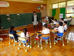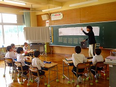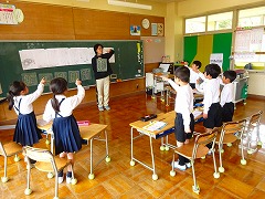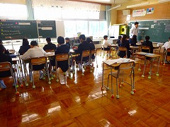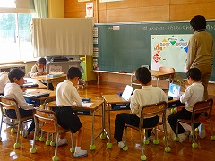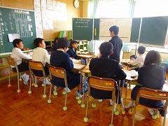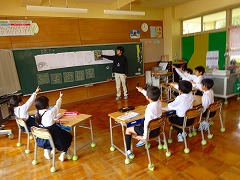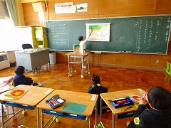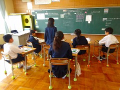 ↓ 複式授業5年生 複式授業の学び方を確認しながら算数の授業を進めています。