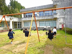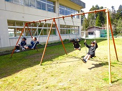 ↑ 長休み、1,2年生は中庭で元気に遊具で遊びました。お花も摘んでプレゼントしてくれました。昼休みは、体育館で元気にドッジボールです。新しい先生が強くて決して当たらないので、みんなびっくりです。