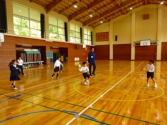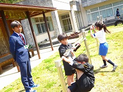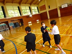 ↑ 休み時間は、中庭で遊んだり、体育館でドッジボールをしたり、エネルギッシュに活動している1年生です。
